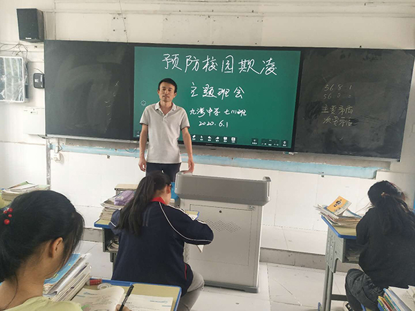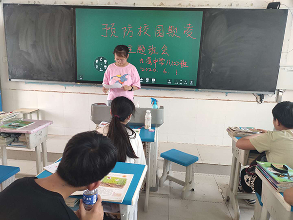 校园是学生学习的的乐园、成长的摇篮,但屡见不鲜的校园欺凌却打破了校园应有的宁静。校园欺凌不但危害学生的身心健康,对学生的心灵留下了深深的伤痕,而且还破坏了正常的教学秩序和和谐的校园环境。为了规范学生行为,促进学生身心健康发展,建设平安校园,九湾中学于2020年6月1日开展了一系列活动。