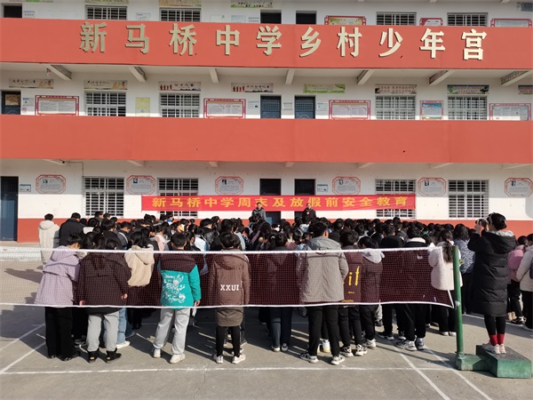 为进一步增强学生的自我防范意识和自我保护能力,确保学生元旦假期在家和途中的安全,2021年12月31日上午大课间,固镇县新马桥中学利用大课间时间在实验楼前召开了学生元旦假期离校前安全教育大会。