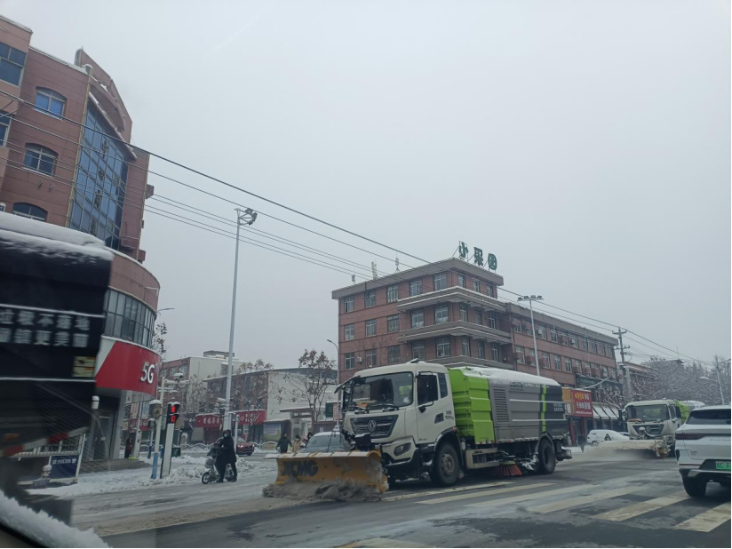 人工密切配合。根据路况的不同,对不适合机械化作业的人行步道等区域,以人工清扫为主,环卫中心集结环卫工人采取分段包干、人工撒盐、区域覆盖的工作方法,出动环卫工人1000人次,撒盐80余吨,集中清理边石下及人行道积雪,对浍河路、谷阳路、黄园路、火车站广场等城区10余条重要道路及周边区域进行大规模的积雪清扫循环作业,做到边下边清、逐步推进,确保道路能扫尽扫、道路通畅。