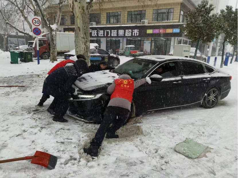 热情助民解困。雪天路滑,志愿者在瓦坊府邸门口、大营路赵泰和堂药房附近铲雪中发现2辆私家车出行打滑,大家主动上前、科学分工、你铲我清,用铁锨将堵住车轮的积雪冰冻铲除,增强轮胎地面摩擦力,然后齐心合力推动车辆,成功帮助驾驶员将车开出困境,驾驶员不住地感谢。此外,志愿者陈波在众彩农贸市场附近道路铲雪过程中,惊奇地发现路面积雪里居然有一部手机,由于手机有密码打不开,陈波原地等候了半天无人前来认领,便带到办公室,欢迎失主现场领走,联系电话0552-6015148。