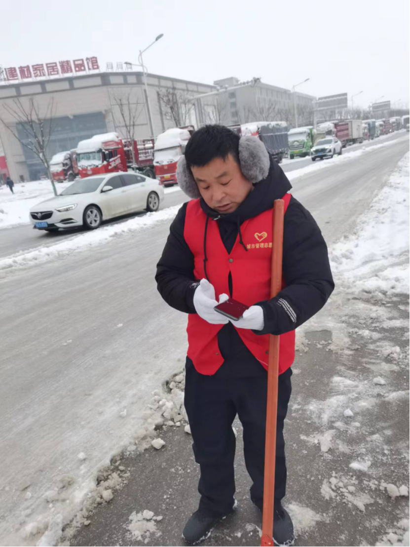 全员志愿扫雪。2月5日一早大雪刚停,县城市管理局机关全体工作人员在局党组的带领下,“城管蓝”纷纷拿起铁锨、扫帚等工具,对城区大营路、工业路、建业路等责任路段开展志愿清雪活动,城市管理局志愿者们热情高涨、斗志昂扬,争着铲、抢着干,誓将“雪”战进行到底,大家分片包干、先敲后铲,只见手中铁锹穿梭、扫帚飞舞,“红马甲”参与100人次,相继清出众彩农贸市场、瓦坊府邸、河畔明珠、东方雅苑、城东农贸市场等20余处入口结冰易滑区域路面,为居民开辟出一条条“安全路”。