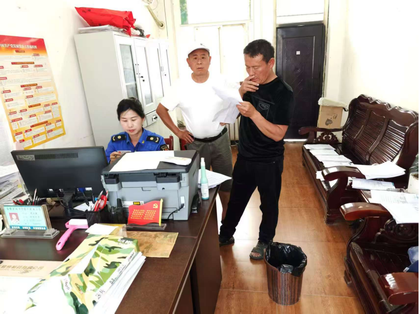 紧锣密鼓,窗口加速度。办理现场,2名工作人员正快速核对信息、录入系统、打印证件。执法大队小蒋的桌面堆满了临时瓜证办理材料,手指在键盘上翻飞。根据瓜农销售瓜果的不同品种,分类别、分区域审核发放瓜果自产自销证,告知瓜农要严格按照“一户一证”实名持证经营。据统计,日均办理瓜证超50张,较往年效率提升20%。
