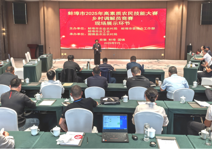 为推动全市高素质农民工作高质量发展,进一步提升乡村调解员的素质能力,促进社会和谐稳定,蚌埠市2025年高素质农民技能大赛乡村调解员竞赛在固镇县举办,竞赛由市农业农村局、市委社会工作部、市总工会主办,固镇县农业农村局承办。经过前期各县区选拔,9月28日,大赛正式启动,9月30日,完美落幕。