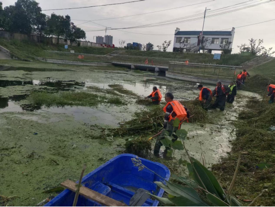 打捞河道水草。入秋以来的多雨天气导致水草生长迅速,不仅影响河道美观,还可能造成水质恶化。为维护公园水系生态平衡,园林所对城西公园水域及汉兴河、三八河等景观河道开展水草专项打捞行动。打捞队伍采用人工与机械相结合的方式,对河道内的浮萍等水生植物进行全面清理,日均出动作业人员15人次、打捞船只3艘,累计清理水草及漂浮物100余吨,从源头改善水域环境,为市民营造了“水清、岸绿”的滨水休闲空间。