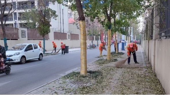 县城市管理局全面推进城区落叶清扫清运 营造洁净市容环境