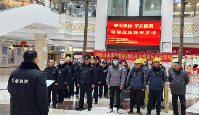切实提升电梯突发故障应急处置能力,保障人民群众生命财产安全,12月24日下午,固镇县市场监督管理局在白马商场组织开展电梯困人应急救援实战演练。县市场监管局、固镇金龙白马有限责任公司、蚌埠市华速电梯设备销售有限责任公司及相关单位共同参与,通过“真演实练”实地检验应急预案的有效性,强化多方协同联动机制。
