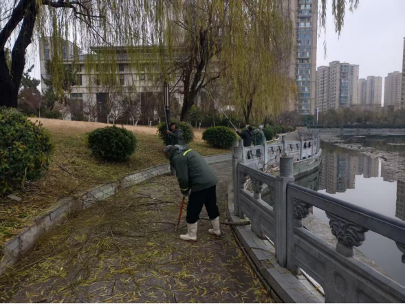 清理垃圾。在修剪作业的同时,园林路灯管理所同步开展园林垃圾清理工作。针对修剪产生的树枝、落叶等废弃物,组织专人进行地毯式收集,并使用垃圾清运车及时转运处理,避免垃圾堆积影响市容环境。截至目前,累计清运园林垃圾5吨,有效解决“美观不足”的问题,确保了修剪现场及周边区域的整洁有序,为市民营造了干净舒适的出行环境,提升了城市绿化景观的整体品质。