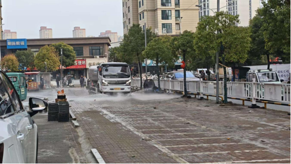 深度清洁市场环境。围绕市容环境提升,县城市管理局持续开展精细化管理。针对汇金大市场门口简易棚拆除后遗留地面的油渍等市容问题,执法人员迅速组织力量,调派高压水车,配合使用烧碱进行专业化清理。通过反复冲刷与洗扫,顽固污渍得以彻底清除,以往脏乱差的市场外围环境焕然一新,用整洁有序的市容面貌助力两会期间的城市形象提升。