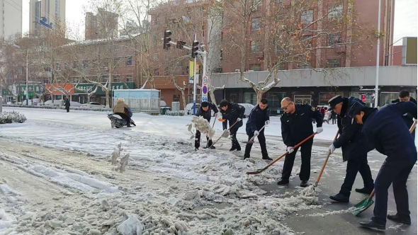 全员上阵攻坚关键节点。上午8时后,县城市管理局领导班子率先垂范,带领机关各股室及执法大队全体人员共计140余人,携带铁锨、扫帚等工具,兵分多路,开赴谷阳路、大营路、工业路等重点路段交口。清雪现场,大家配合默契,干劲十足,挥舞工具合力铲除路口积存的冰雪30余处,扫除了影响车辆转弯的关键障碍。一时间,“城管蓝”忙碌的身影与皑皑白雪交相辉映,构成了一道冬日里别样的城市风景线。