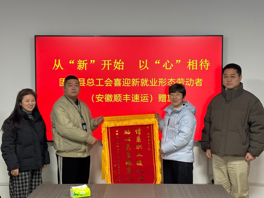 1月22日上午,安徽顺丰速运固镇分公司工会代表专程来到固镇县总工会,将一面印着“情系职工暖人心 贴心关系娘家人”的锦旗送到县总工会负责人手中,以此表达对县总工会在服务新就业形态劳动者方面所做工作的由衷感谢和高度认可。
