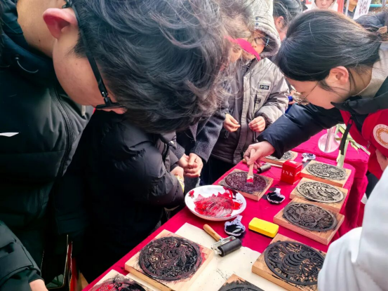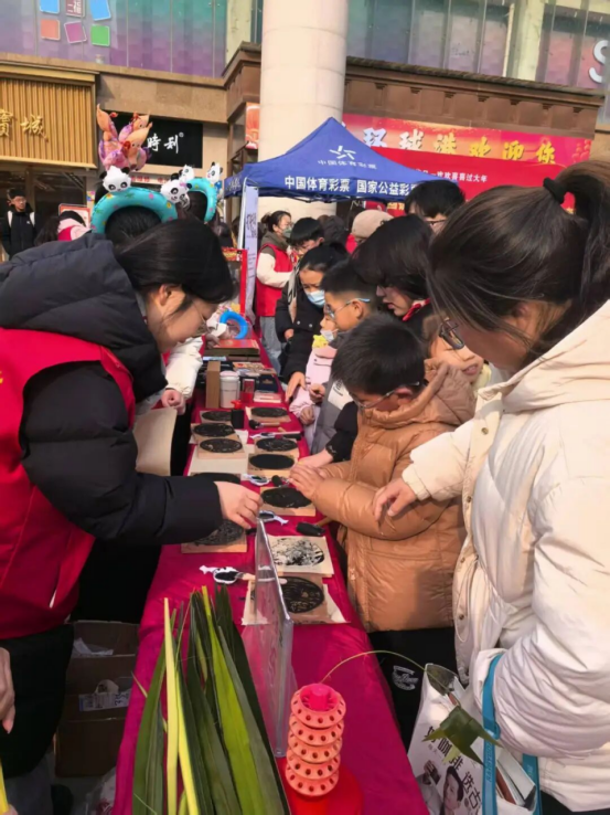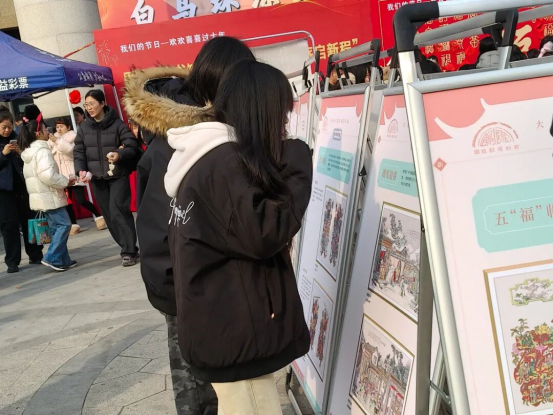 活动期间,博物馆展台人气旺盛,气氛热烈。手工拓印区吸引了大量亲子家庭,孩子们在家长指导下亲手拓印十二生肖与年画图案,在实践中领略传统技艺的魅力。“新年画吉”大运河木板年画艺术展,以极具地域特色的艺术形式,生动展现了大运河历史风情,观众驻足欣赏,感受方寸之间的吉祥寓意与工匠精神。“迎新春·送春联” 活动现场墨香四溢,我们将一幅幅满载祝福的春联送至观众手中,浓浓的年味扑面而来。