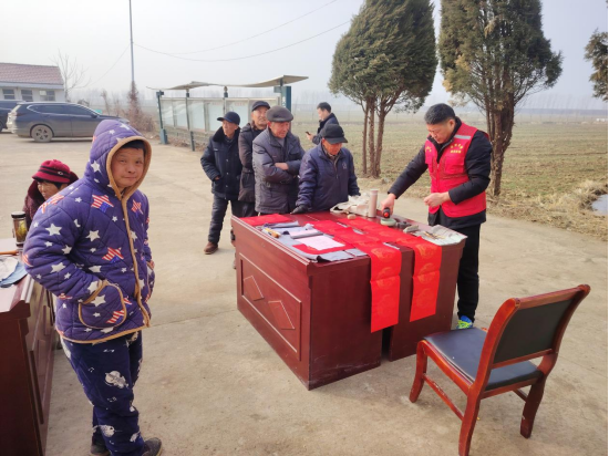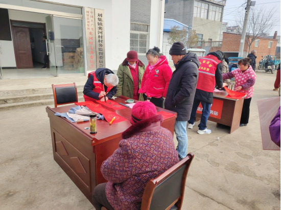 精心筹备暖场。夹河村委会门前广场早早便热闹起来,村委会工作人员提前布置场地,将桌椅摆放整齐,备好笔墨纸砚与大红春联纸,为活动开展做好充分准备。消息传开后,村民们纷纷邻里相约、闻讯赶来,大家有序排队等候,齐聚盼年味,现场洋溢着喜庆温馨的氛围。尽管冬日寒风凛冽,但村民们的热情丝毫未减,一张张笑脸让乡村的冬日多了几分暖意,每个人都满怀期待地等候着属于自己的新春祝福。
