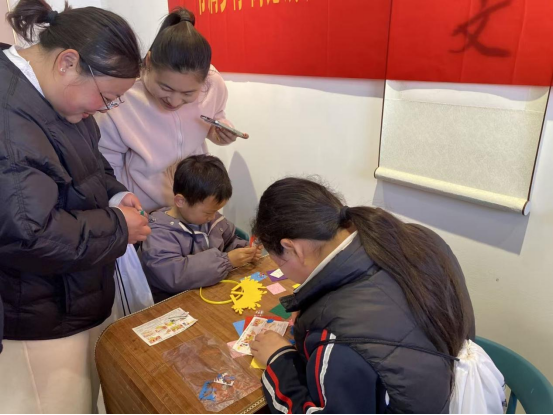 在DIY簪花发箍手工环节,孩子们在志愿者老师的指导下,用色彩斑斓的布艺花朵、叶片精心装饰发箍,专注创作的模样与一件件充满童趣的作品,让活动现场洋溢着欢声笑语,为乡村童年增添了一抹温暖亮色。