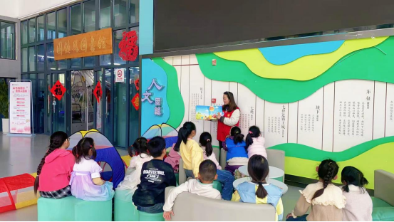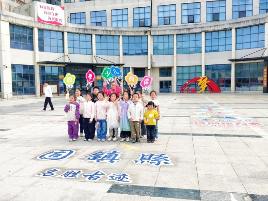 活动开始,志愿者老师进行绘本分享,用生动的讲述激发阅读兴趣。随后,大家来到馆前广场的地面彩绘区域,参与趣味运动闯关:在“诗词接力赛”彩绘赛道上,以“答对向前走一步”的形式比拼诗词积累,解锁传统文化知识;同时体验经典跳房子游戏,在欢笑中释放活力。