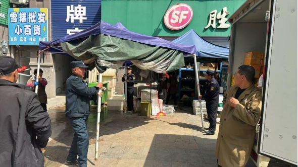 此次行动重点针对浍河欣城小区北门内侧区域。该处几户一楼商铺长期存在违规搭设简易棚、占用小区公共通道进行出店经营的现象,不仅影响小区整体环境,也妨碍了居民正常通行,小区业主对此反映强烈。