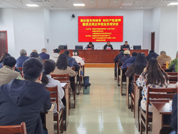 为助力企业破解发展痛点难点,有效提升科技创新与知识产权运用能力,4月23日,固镇县市场监管局联合县科技局、县经济开发区组织举办了高价值专利培育、知识产权质押融资及高企申报业务培训会,为县域企业送上“政策干货”和“实操指南”。全县40余家企业负责人、知识产权专员、高企申报工作人员以及相关知识产权服务机构、代理机构从业人员踊跃参会,现场学习交流氛围浓厚。