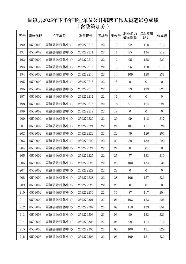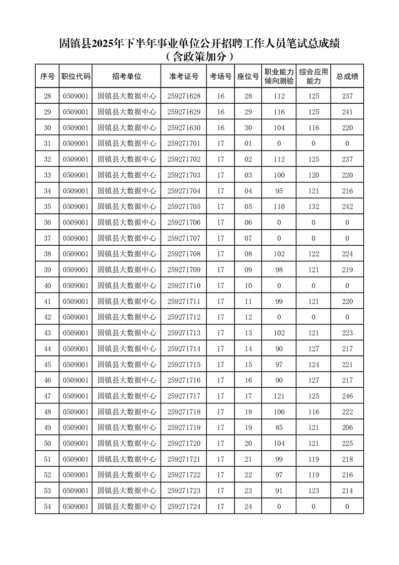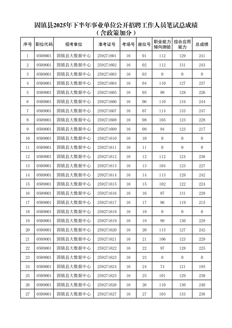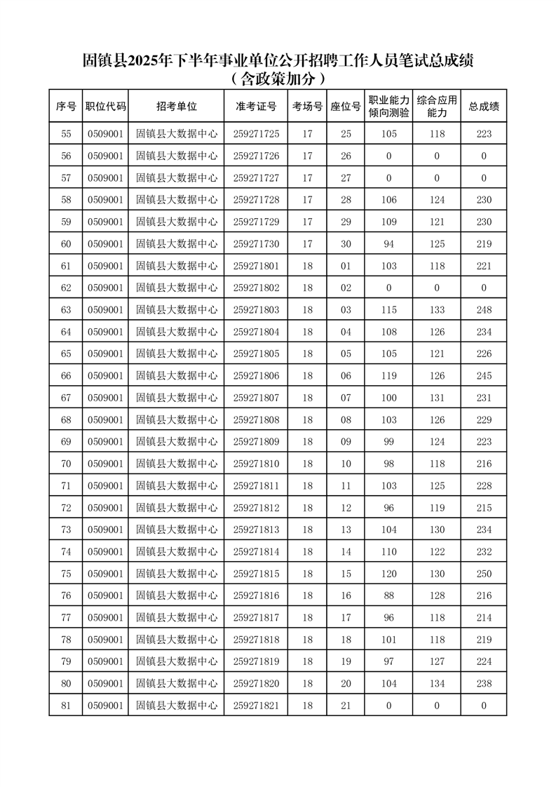 固镇县2025年下半年事业单位公开招聘工作人员笔试总成绩