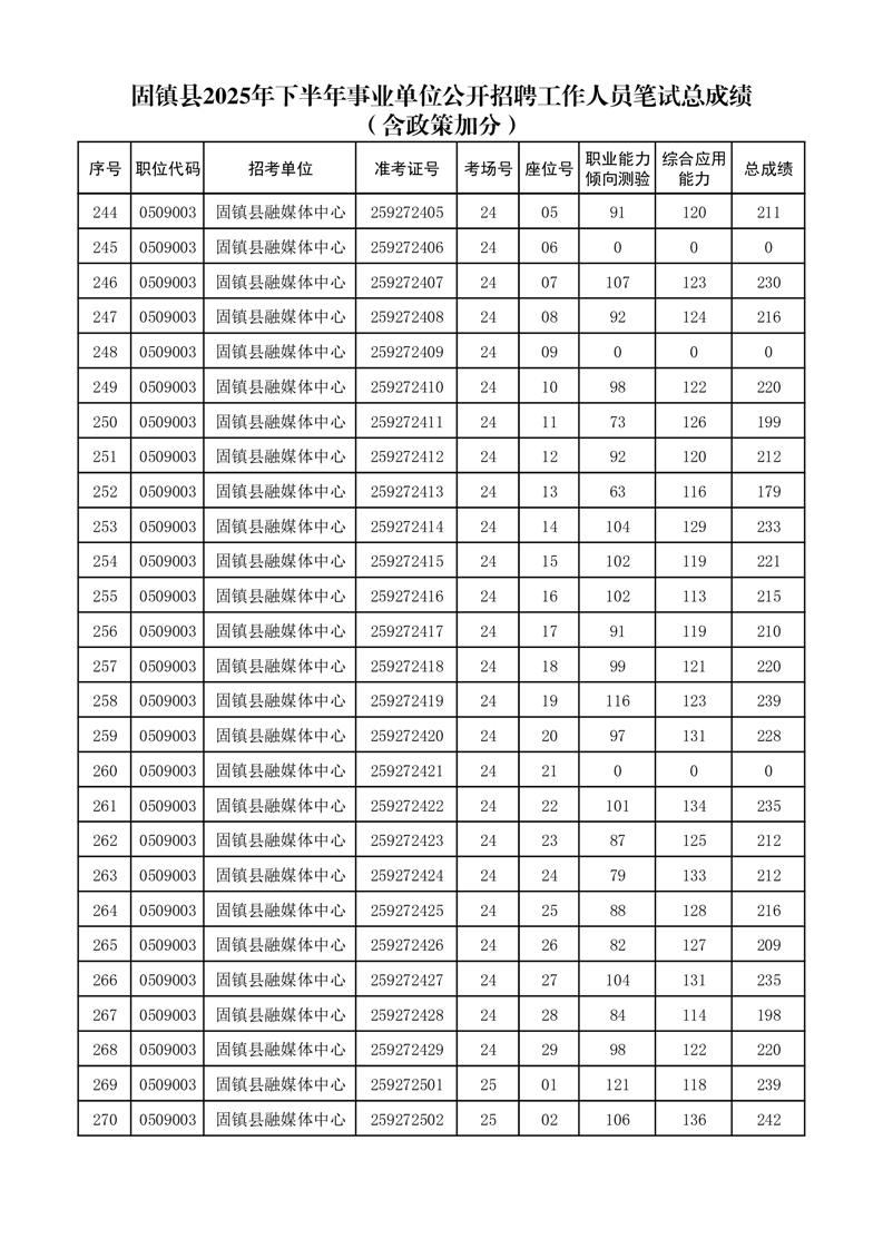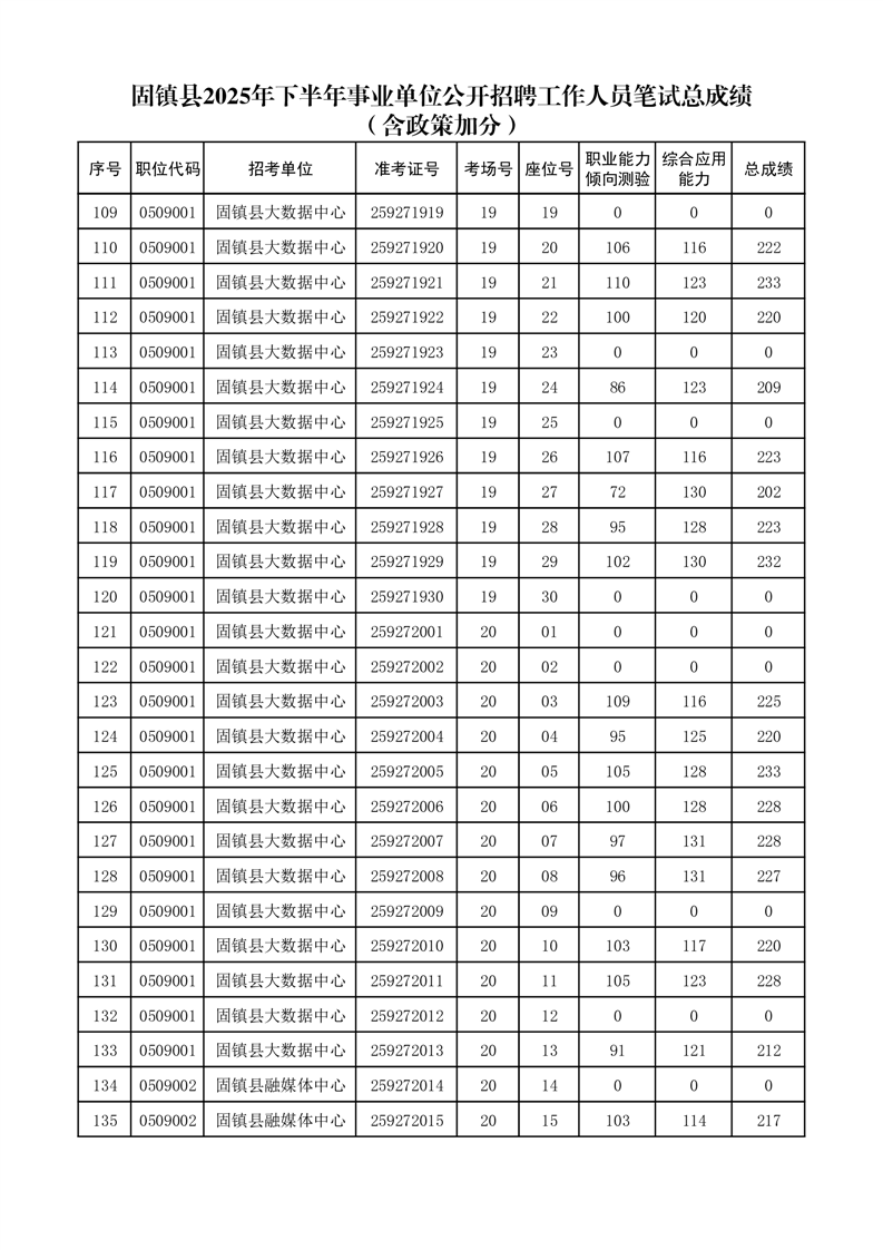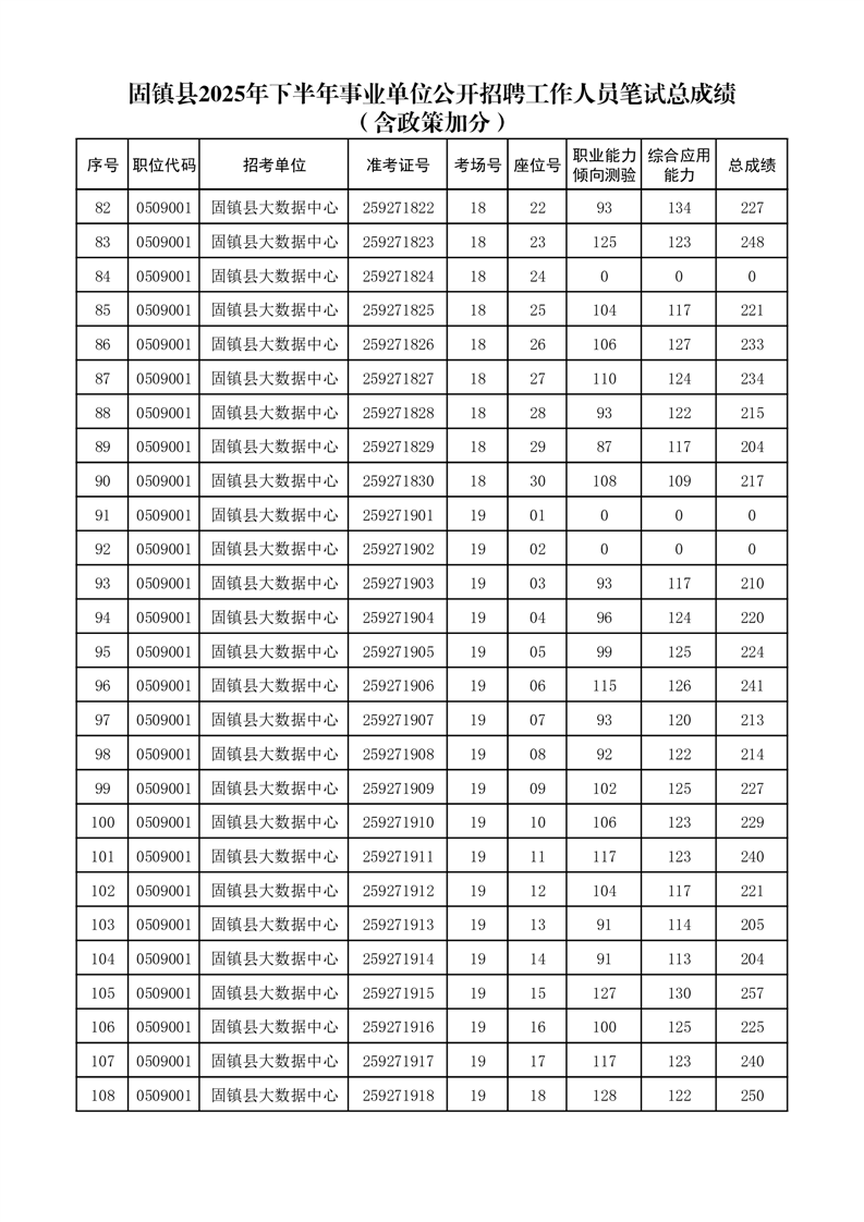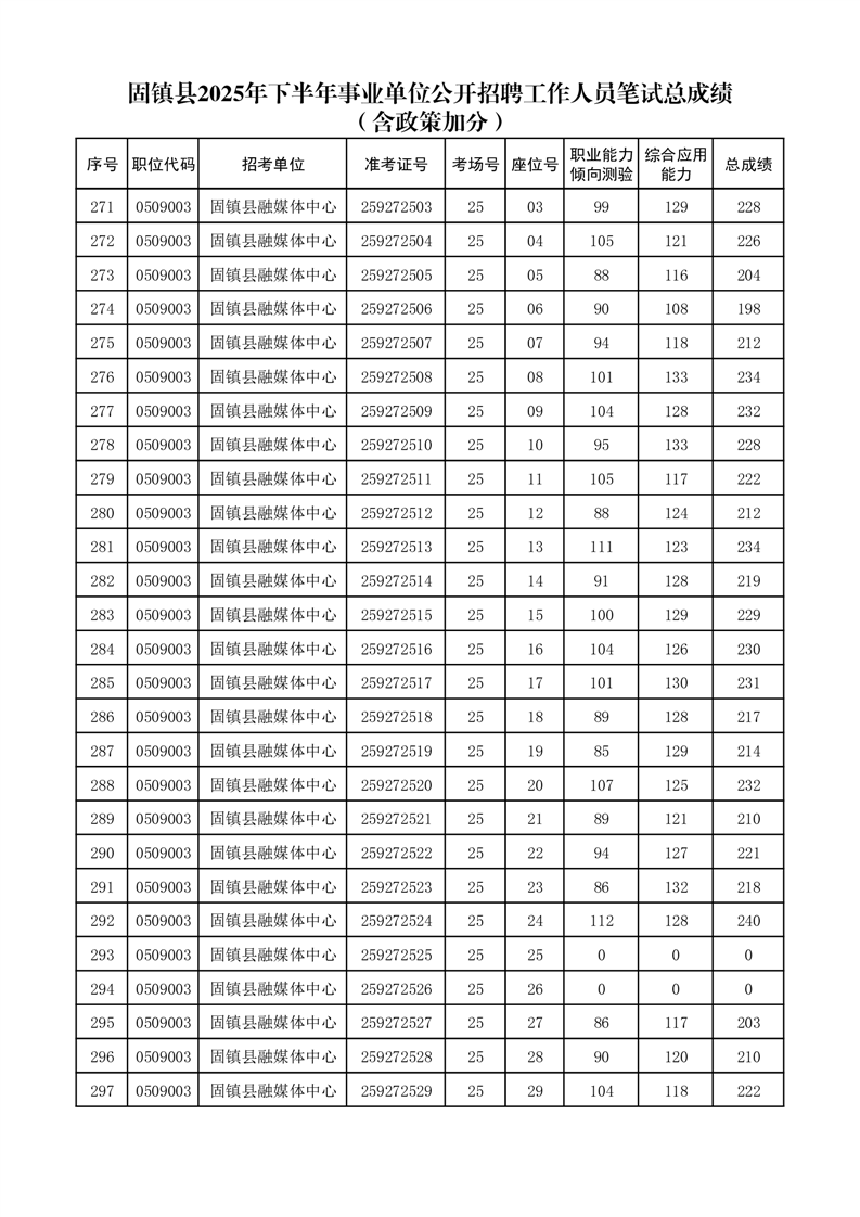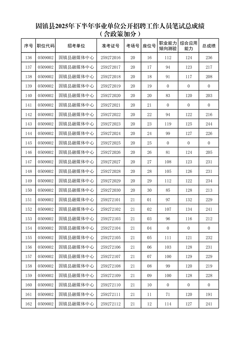 固镇县2025年下半年事业单位公开招聘工作人员笔试总成绩