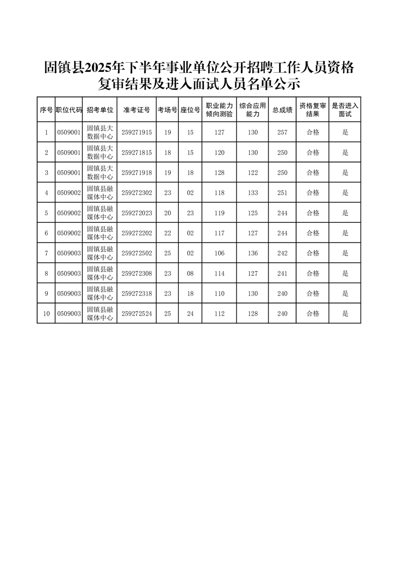 固镇县2025年下半年事业单位公开招聘工作人员资格复审结果及进入面试人员名单公示
