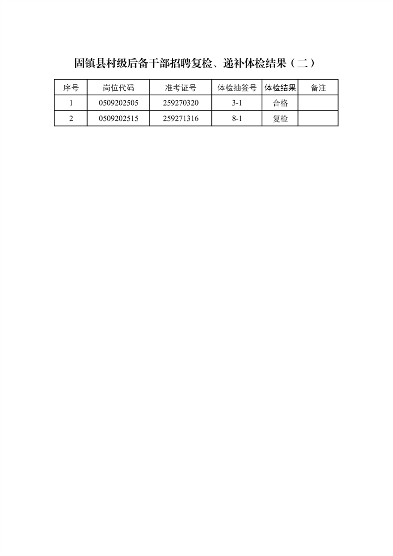 固镇县村级后备干部招聘复检、递补体检结果(二)
