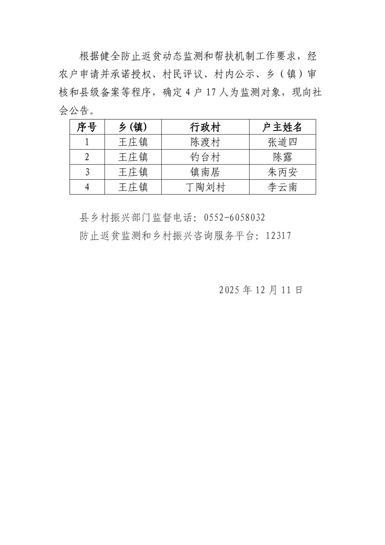 固镇县确定监测对象名单公告(2025年第二十六批)