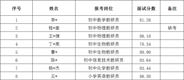 2026年固镇县教育局选聘教研员公告》,现将2026年固镇县教育局选聘教研员面试分数公布如下:
