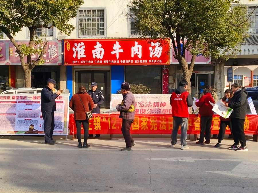 在第十二个国家宪法日来临之际,为大力弘扬宪法精神、筑牢宪法权威法治根基,增强全民法治观念,12月4日,王庄镇平安办、派出所、司法所、文化站等多部门携手发力,在镇区街道开展了以“学习宣传贯彻习近平法治思想,推动宪法深入人心”为主题的国家宪法日集中普法宣传活动。