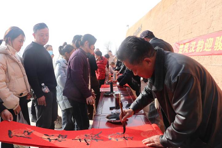 翰墨飘香进景区,手写春联年味足。在垓下遗址博物馆门口,一场“楚风汉韵赢骏马 福满濠城送万家”现场书写派送活动火热开展。书法志愿者们挥毫泼墨,将美好的寓意融入一笔一画,为来往游客送上定制的“文化年货”。