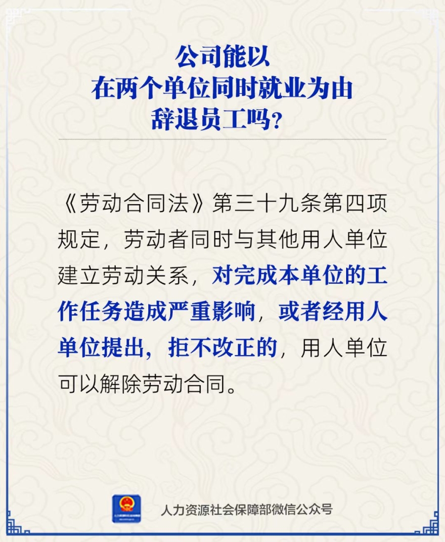 公司能以在两个单位同时就业为由辞退员工吗?