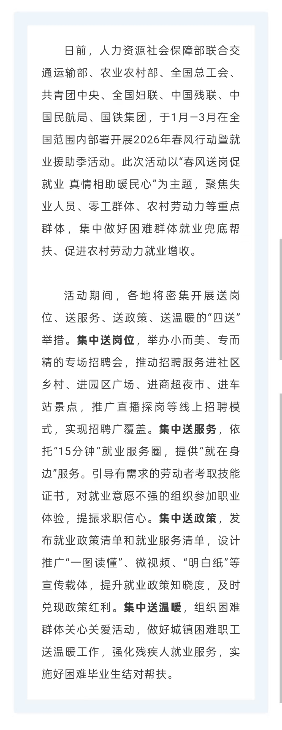春风送岗促就业 真情相助暖民心——人社部等九部门部署开展2026年春风行动暨就业援助季活动