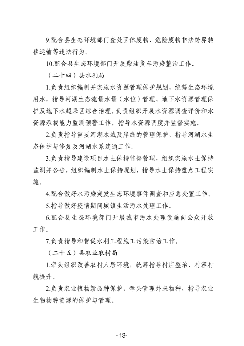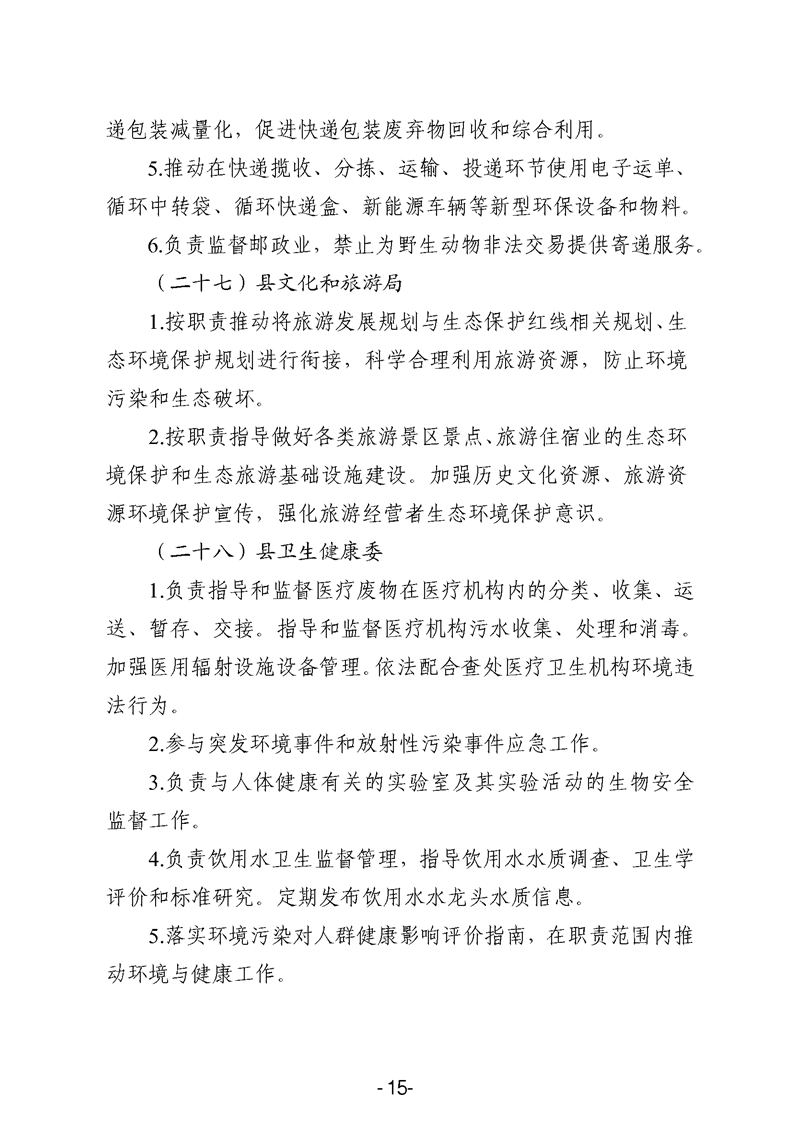 关于印发《固镇县县直有关部门生态环境保护责任清单》的通知固环委【2022】1号