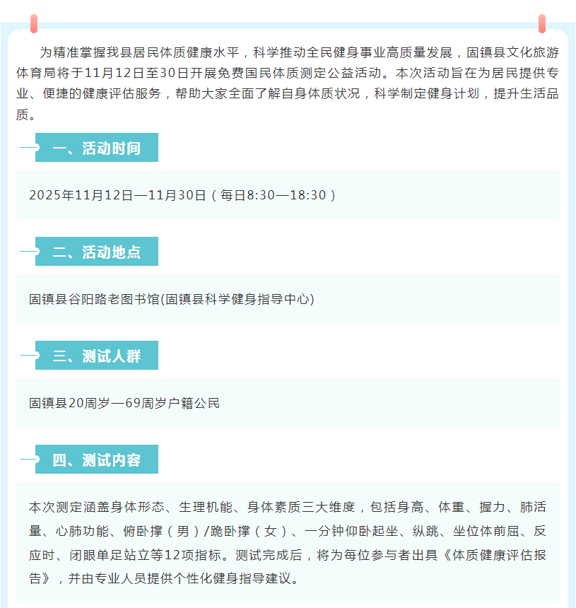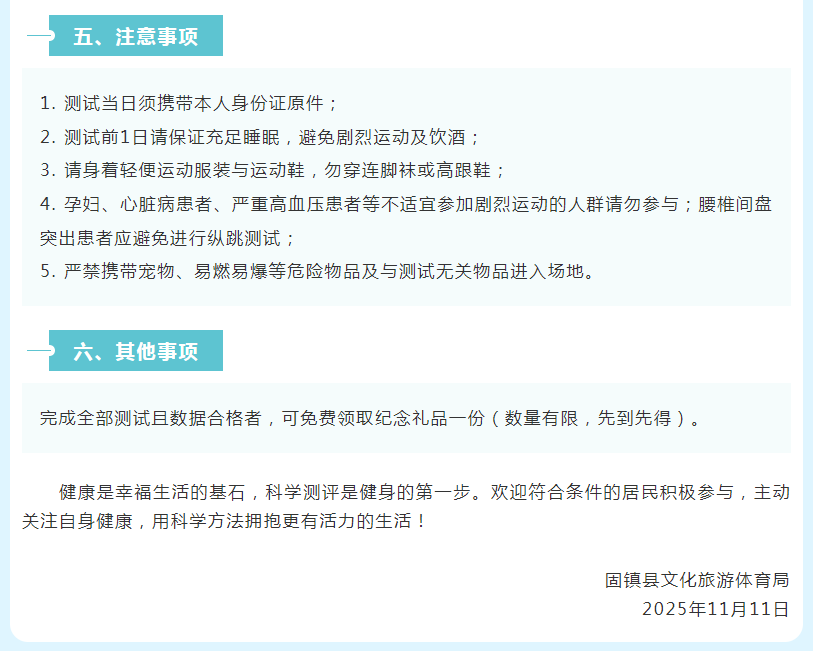 【便民通知】固镇县2025年免费国民体质测定活动即将启动,邀您科学评估健康状况!
