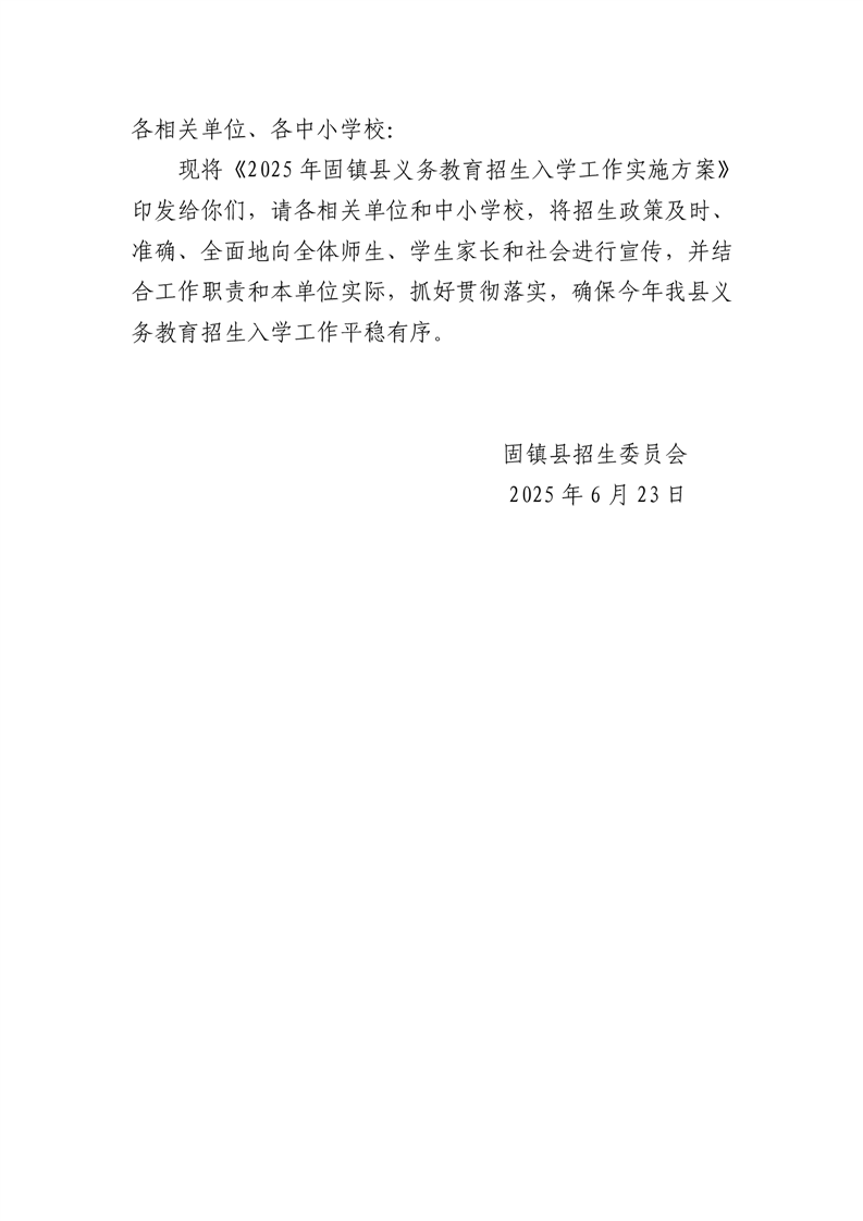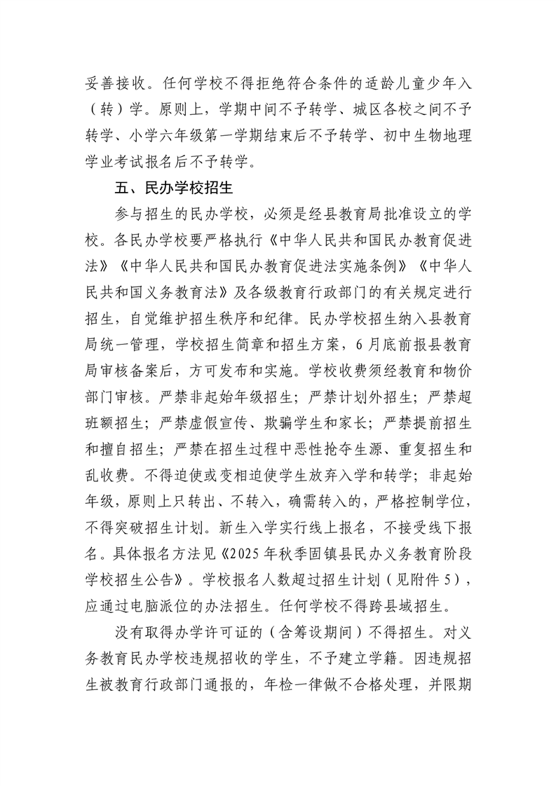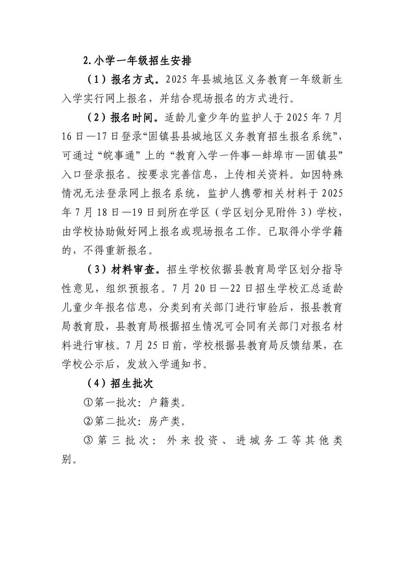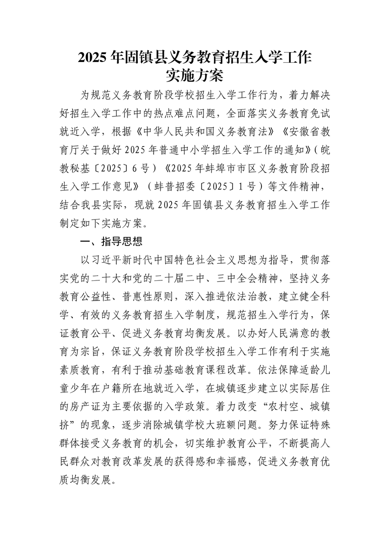 关于印发《2025年固镇县义务教育招生入学工作实施方案》的通知