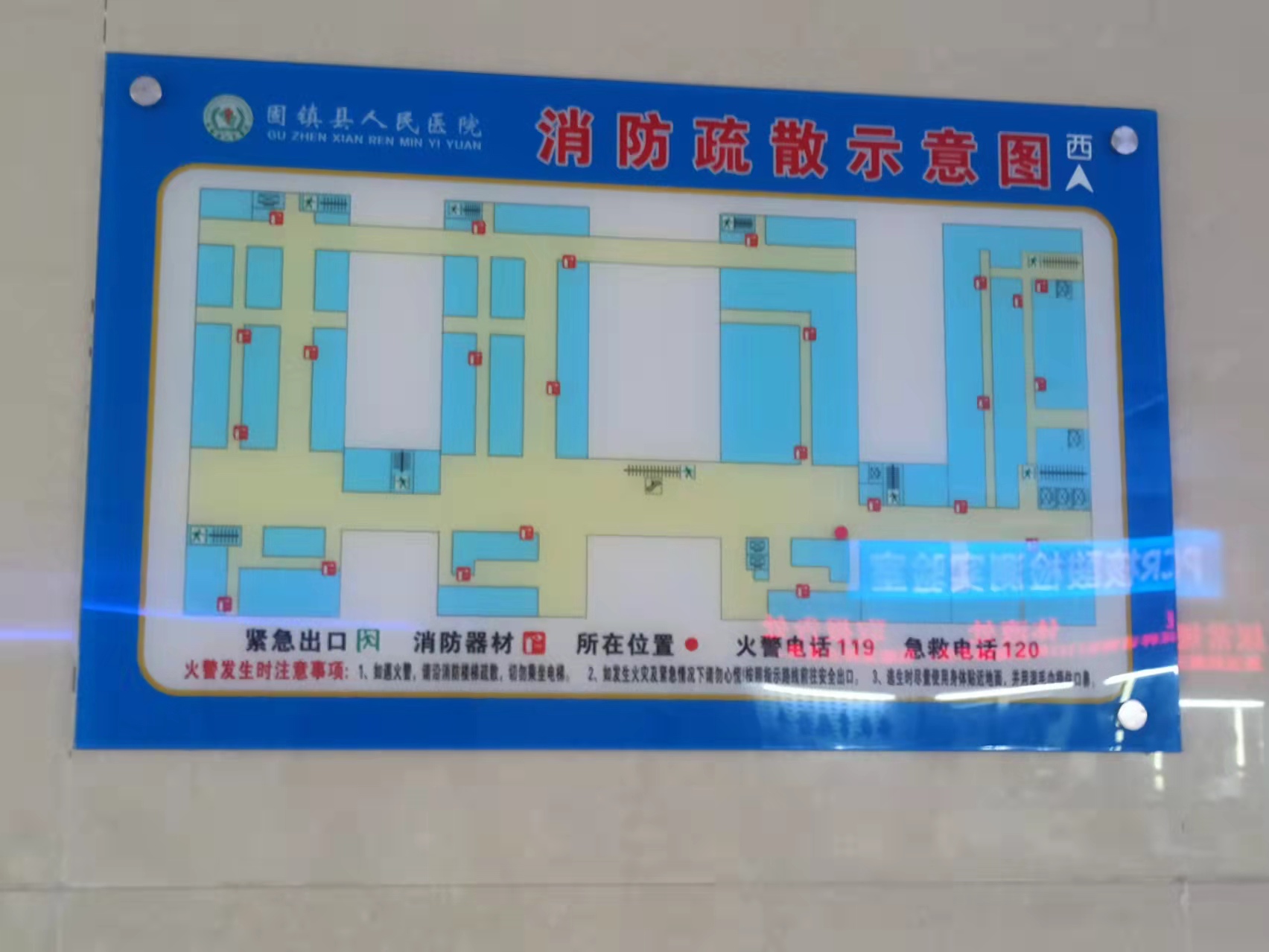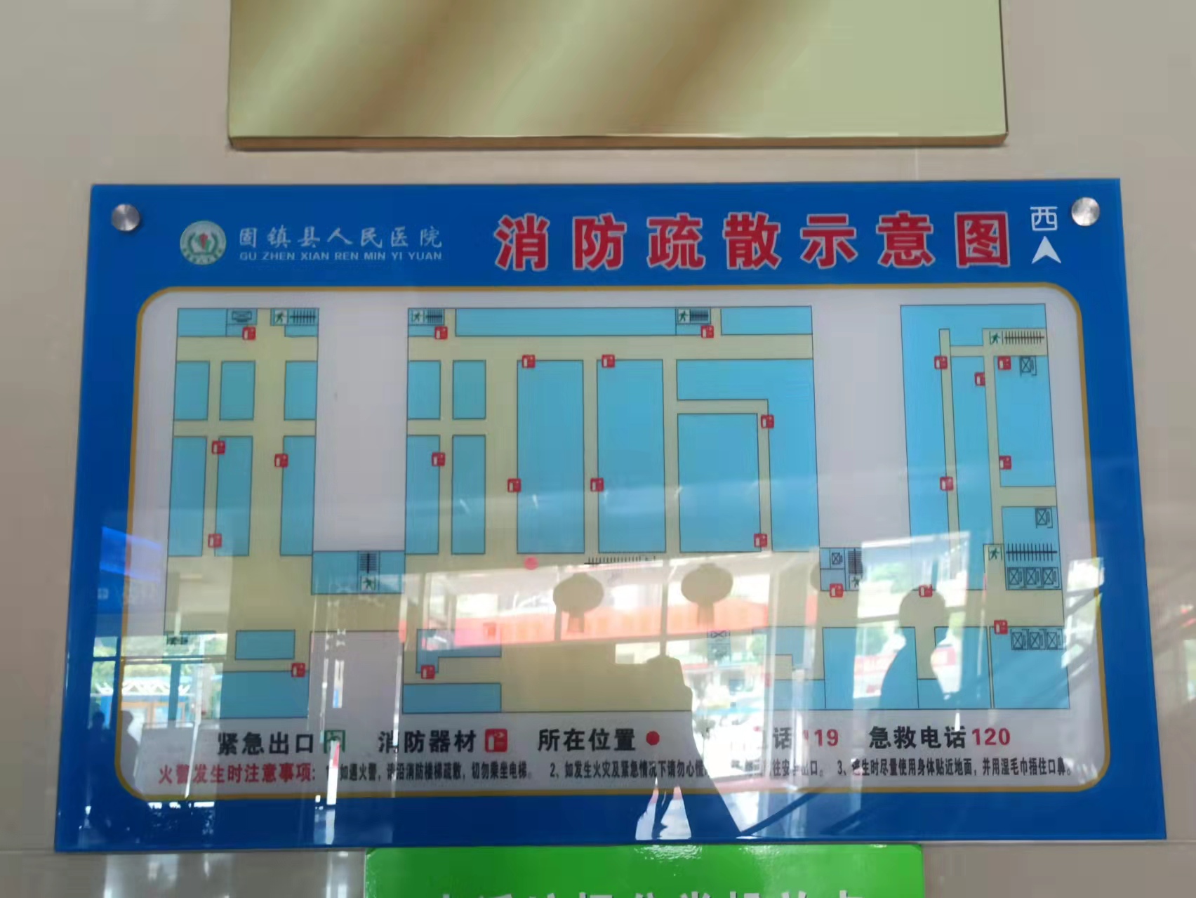 医院内部多处展示有疏散示意图,如发生紧急情况请依据示意图前往最近的安全出口