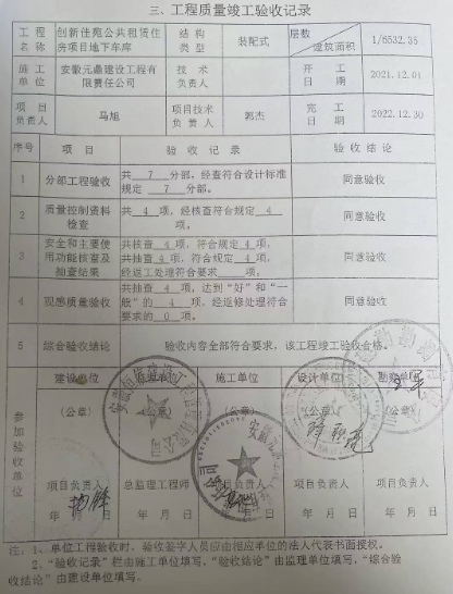 验收单位:监理:安徽恒信建设工程管理有限公司 马磊,施工:安徽元鼎建设工程有限责任公司 马旭,设计:安徽华盛国际建筑设计工程咨询有限公司 薛秋亮,勘察:安徽水文工程勘察研究院 王军,建设:固镇新鑫置业有限责任公司 杨锋