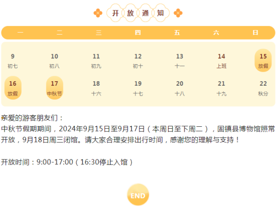 2024年固镇县博物馆中秋节假期开放公告