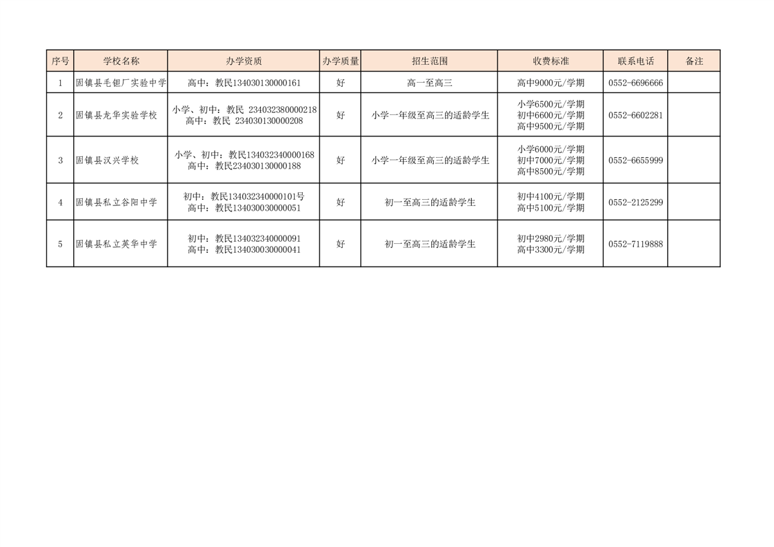 固镇县民办学校相关情况统计表
