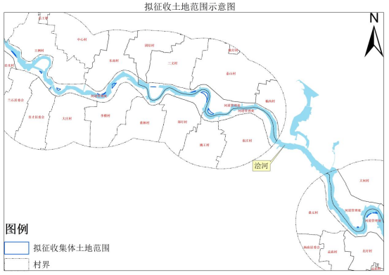 本次拟征收土地东至杨庙镇北圩村北湾组,西至湖沟镇浍光村后楼组,位于浍河两岸。