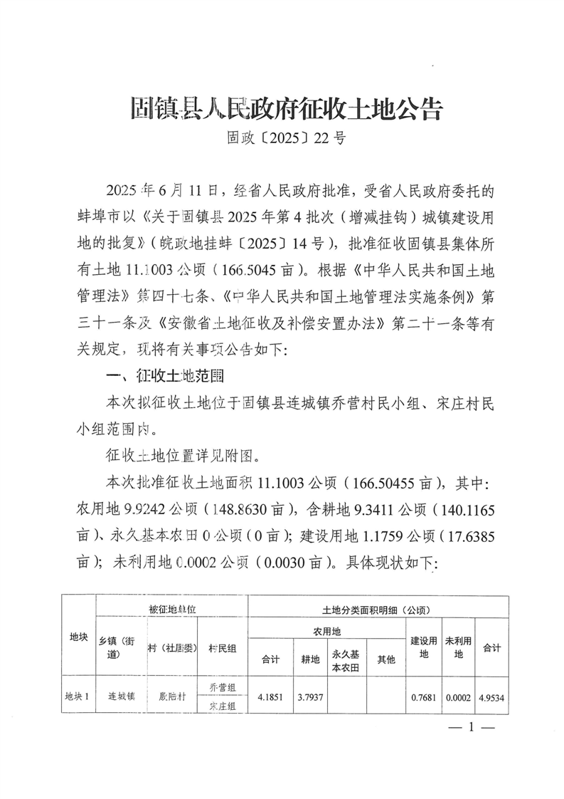 固镇县人民政府征收土地公告(固政〔2025〕22号)