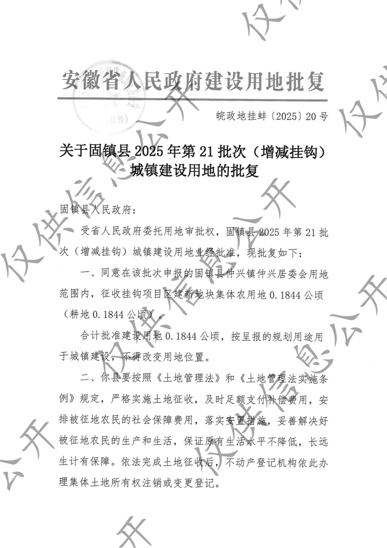关于固镇县2025年第21批次(增减挂钩)城镇建设用地的批复