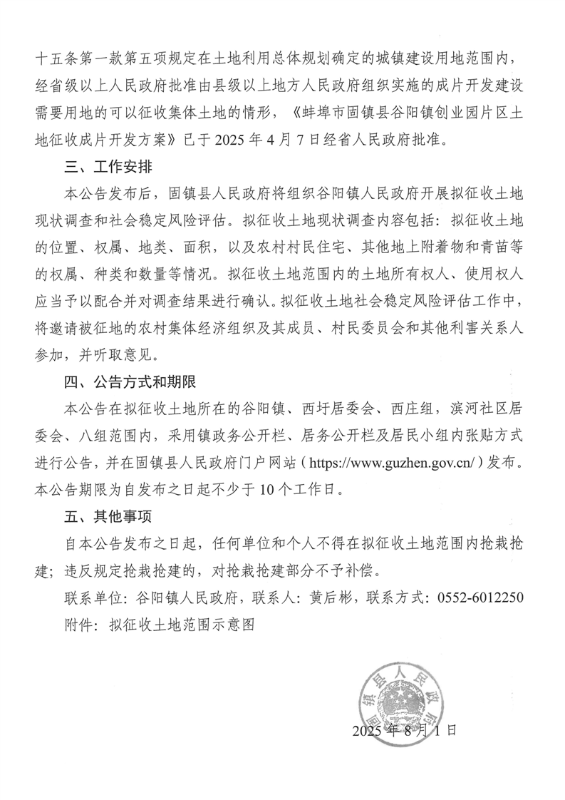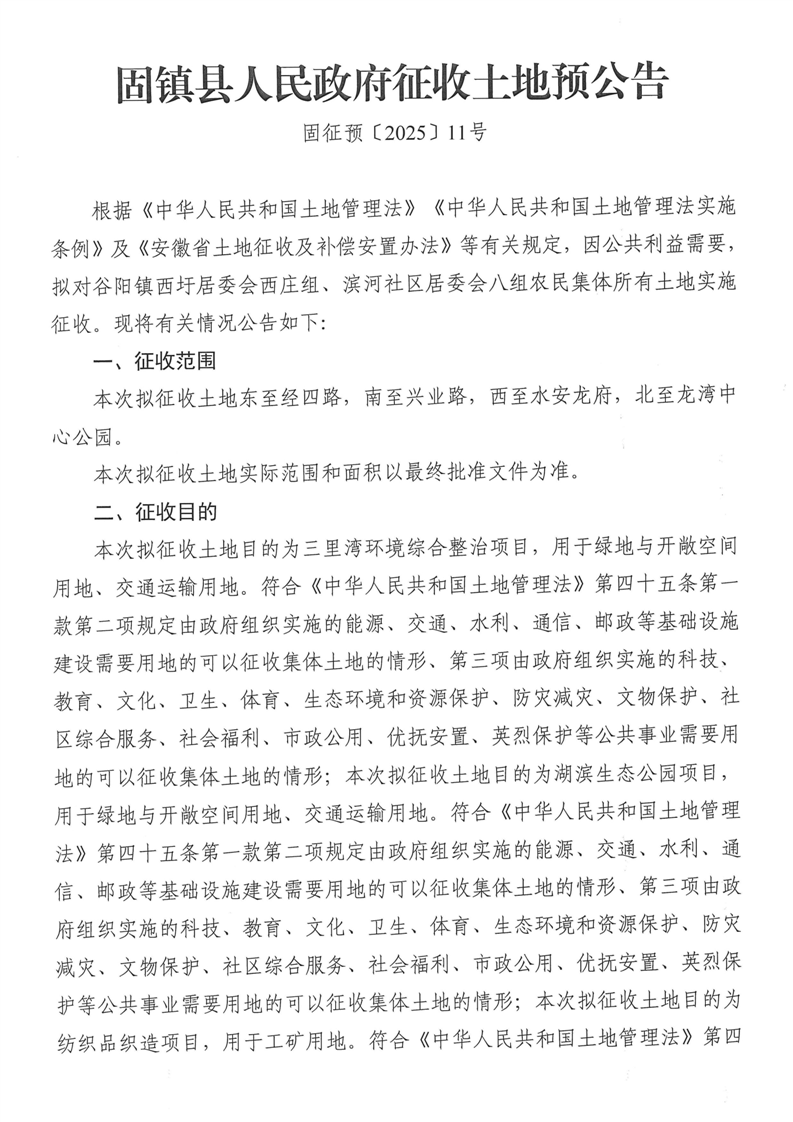 固镇县人民政府征收土地预公告(固征预〔2025〕11号)