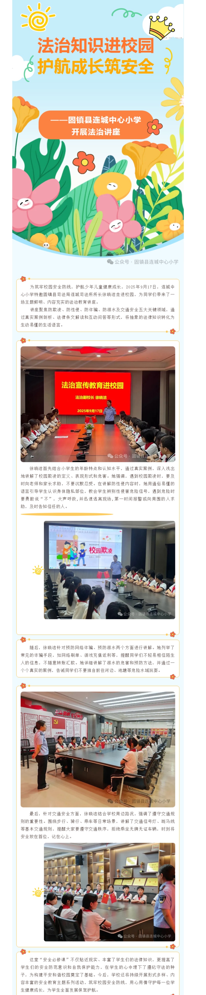法治知识进校园,护航成长筑安全——固镇县连城中心小学开展法治讲座