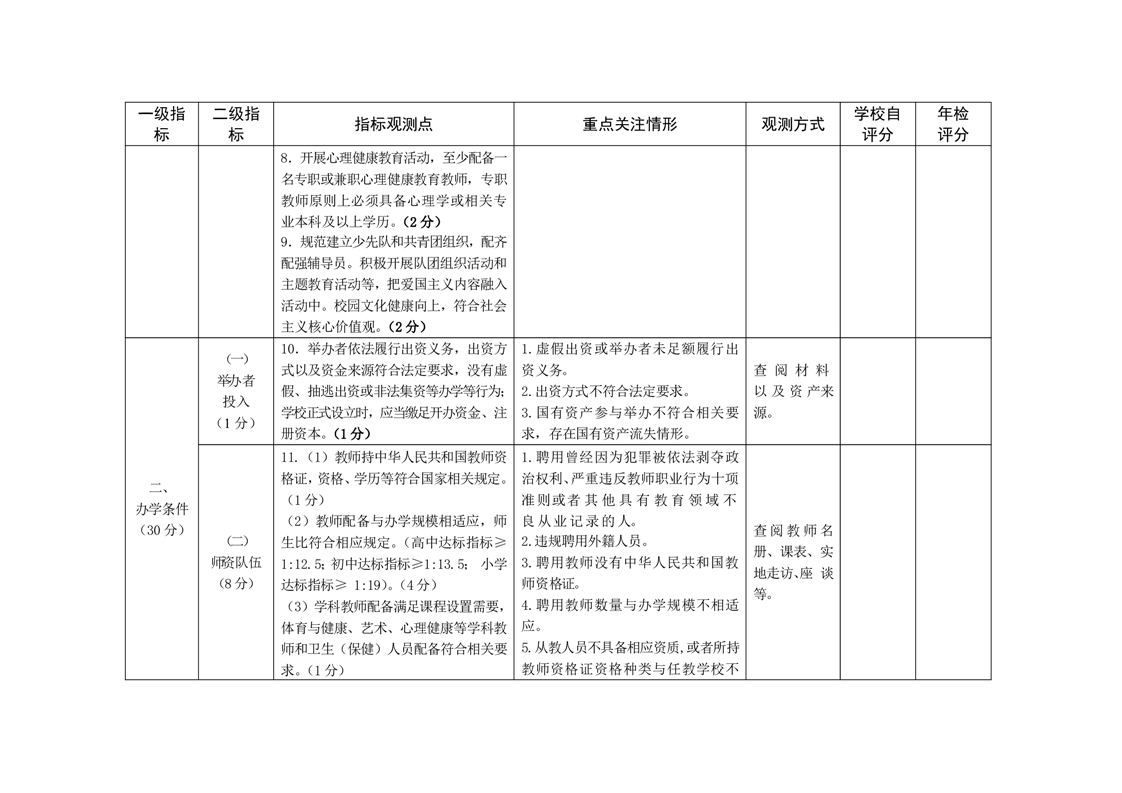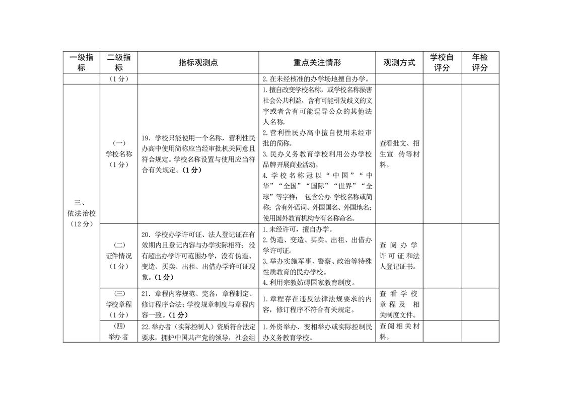 安徽省民办中小学年度检查指标体系(试行) |