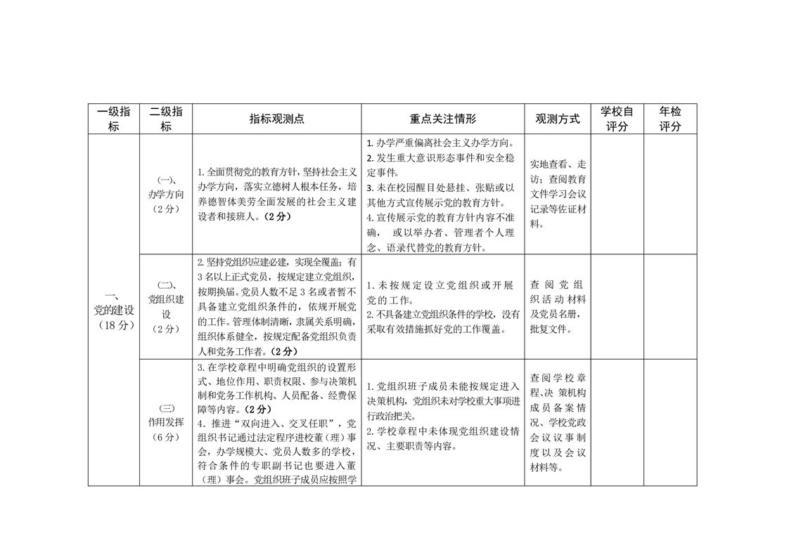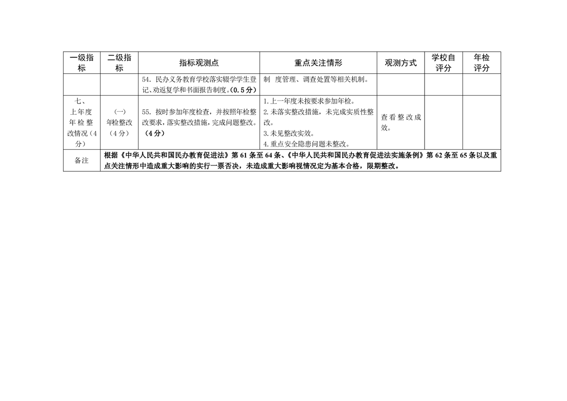 安徽省民办中小学年度检查指标体系(试行)