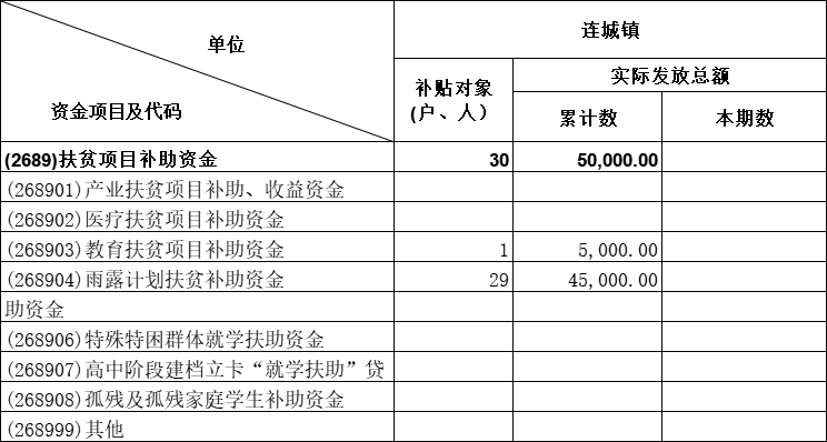 连城镇2025年6月份扶贫项目补助资金发放表