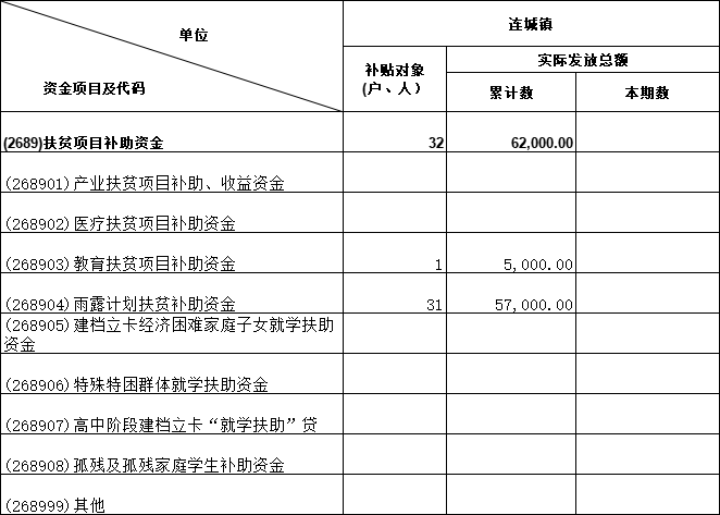 连城镇2025年8月份扶贫项目补助资金发放表 |