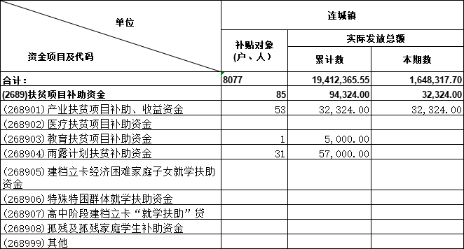 连城镇2025年10月份扶贫项目补助资金发放表 |