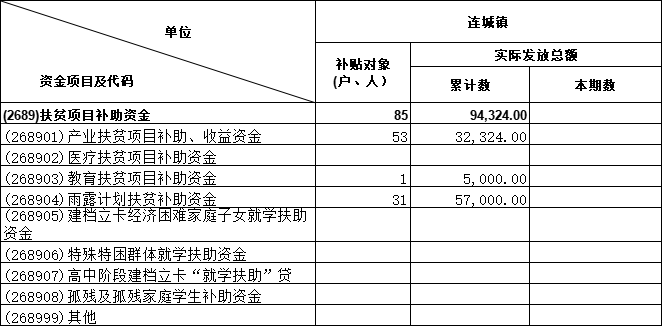 连城镇2025年11月份扶贫项目补助资金发放表 |