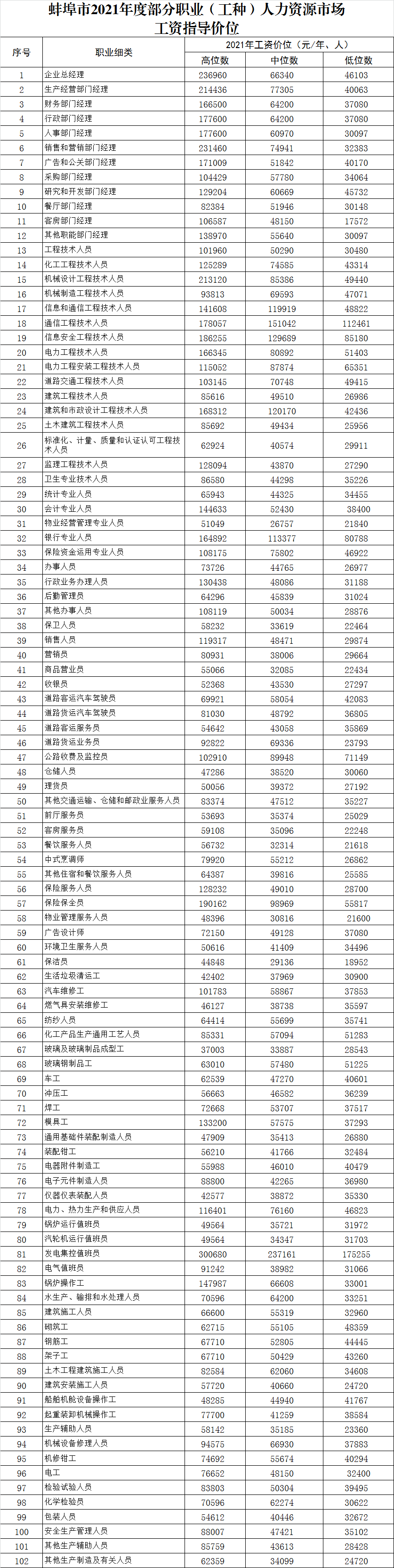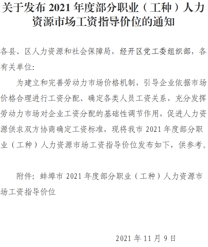 关于发布2021年度部分职业(工种)人力资源市场工资指导价位的通知
