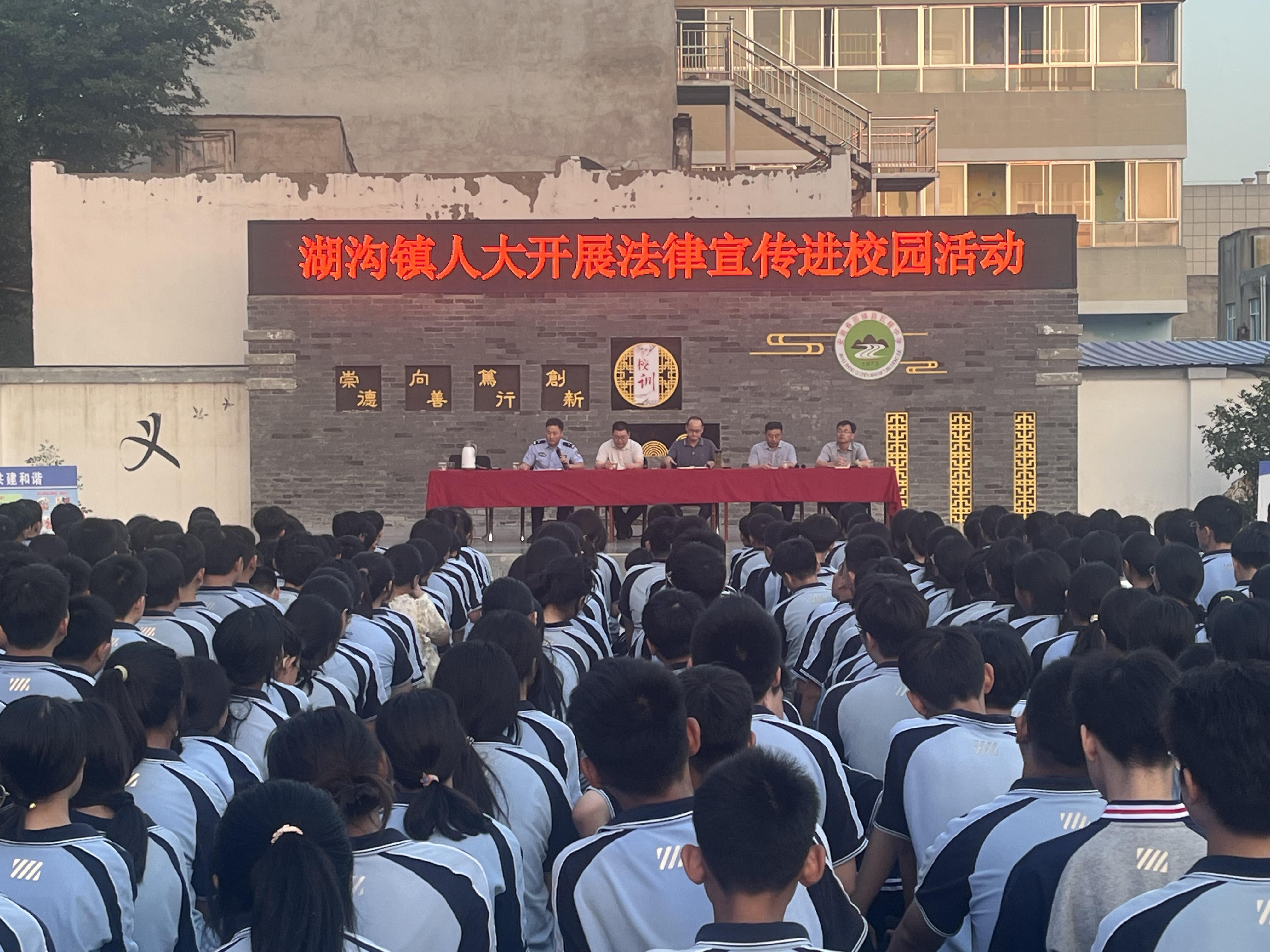 9月4日下午,固镇县湖沟镇人大会同镇平安办、应急办、司法所、派出所等部门走进瓦疃中学,开展“江淮普法行”活动,推进法律教育宣传进校园,推动全镇法律宣传教育工作深入开展。